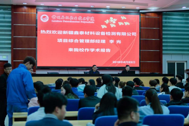 2018年4月23日上午,懂球体育邀请新疆鑫泰设备检测有限公司项目综合管理部经理李光,在东区报告厅为16、17级“理化检测与质检技术专业”员工和教师作主题为“无损检测与现代工业应用”的学术报告。