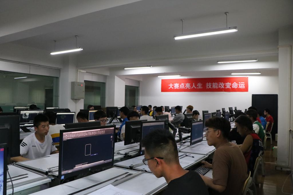本次竞赛形式为实际操作,按照给定绘图技术要求,结合平时所学CAD知识,遵守国家标准,绘制标准图纸。比赛现场,参赛选手态度认真,充分利用平时的所学技能,娴熟地画出规定图形,一根根线条经过拉伸旋转,呈现在眼前的是一份份精美的图纸。