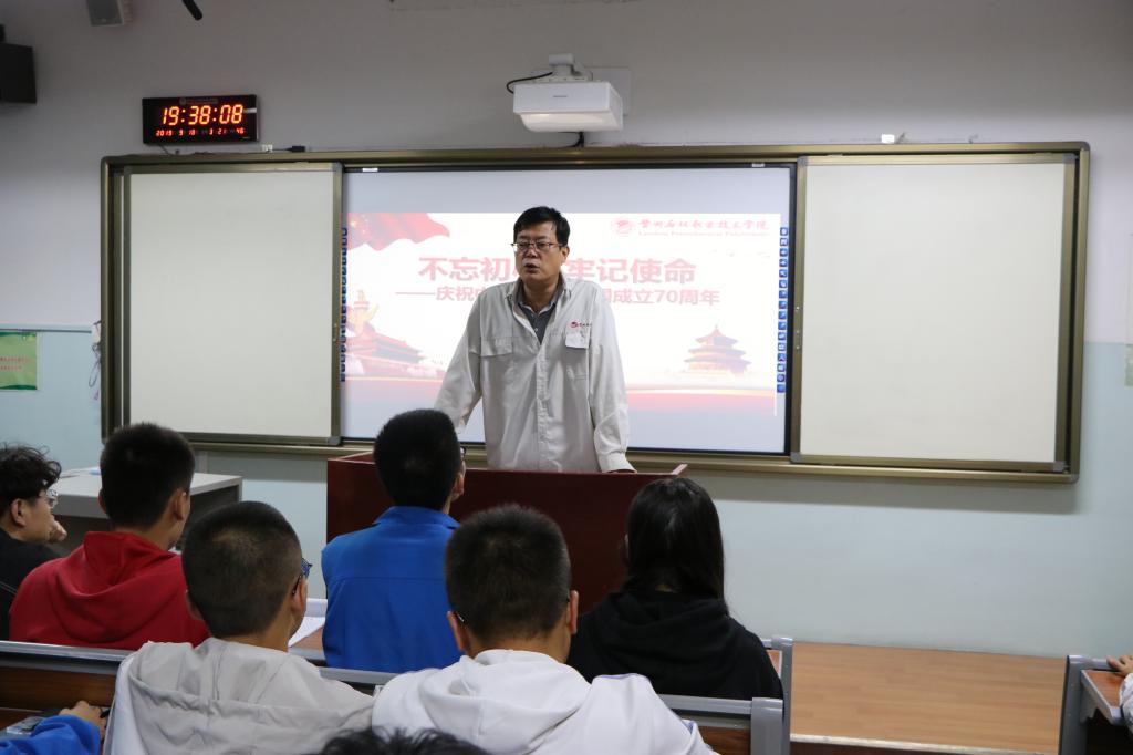 为隆重庆祝中华人民共和国成立70周年,大力弘扬以爱国主义为核心的伟大民族精神。在祖国70周年华诞之际,懂球体育党总支于9月18日晚,在机电楼301、302教室组织开展了党员、入党积极分子、院员工干部及各班级负责人近200余人的“不忘初心、牢记使命”主题教育活动。