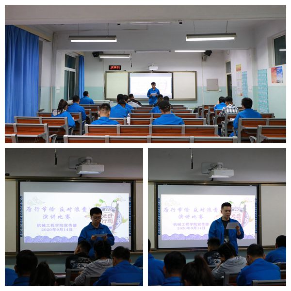 为深入贯彻 “光盘行动”精神,积极响应光盘行动,做到坚决不浪费一滴粮食。懂球体育团总支宣传部于9月11日晚、9月14日晚分别在机电楼401教室组织了“厉行节俭,反对浪费”演讲比赛初、决赛; 19级部分员工参加了此次比赛。
