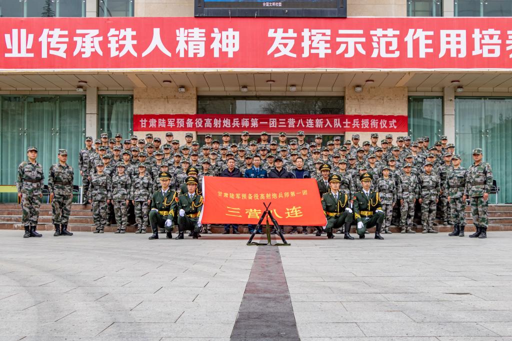 随后,全体官兵面对连旗进行了宣誓,铮铮誓言无悔青春。新兵授衔仪式是军人最值得高兴和难忘的事情,军衔是军人身份的象征,是军人的神圣使命和崇高荣誉,也是士兵的成长见证。穿上军装就要扛起使命,戴上军衔更要奋勇担当,此刻青春是令行禁止的严明纪律,是使命、责任与荣光!