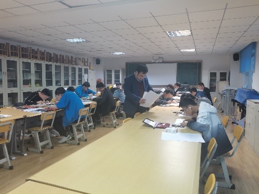 此次选拔赛由公司工程制图教研室老师出卷、监考、阅卷及审核。选拔赛的形式分为尺规建模和计算机建模两大类。重点考察员工对机械零件的表达、零部件读图和软件操作等知识点的掌握程度,旨在选拔出具备绘制和识读复杂组合体能力的同学。比赛过程中,同学们争分夺秒,沉着冷静,认真思考,在规定的时间里都交上了满意的答卷。