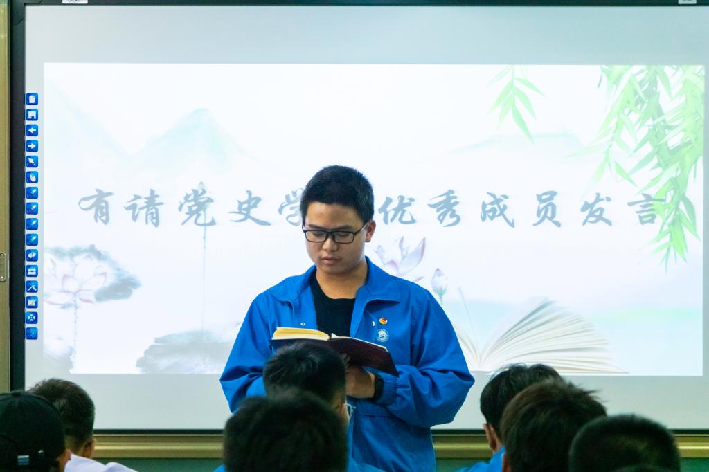 活动开始后,首先由主持人介绍了活动意义以及活动流程;为激起同学们参加活动的热情,读书分享活动开始前进行了思政三分钟"红色"视频展,在思政三分钟期间,同学们积极互动,热烈讨论,针对主持人提出的问题畅所欲言,其他同学也结合自己的所思所感进行有益的补充,在短时间内掀起了一场头脑的风暴,思想的大餐。随后“党史笔记进宿舍”优秀笔记获奖者分别进行了分享发言。其中杨彦斌分享了自己的感想,他从《中国共产党历史二十八讲》一书中,深刻认识到中国共产党的创立是艰难的,伟大的,经历了一波三折的。这也告诉我们,没有什么事情是一蹴而就的,任何事情都需要不断的实践,坚持理论和实践的有机结合才能实现最终的目标。路菲菲分享了《中共党史若干问题再研究》一书,从书中可以看出,任何学习都不能是照抄照搬的,而是要善于总结经验,结合自身具体情况,并且不能回避错误,要从错误中吸取教训,不断提高认识水平和实践能力。