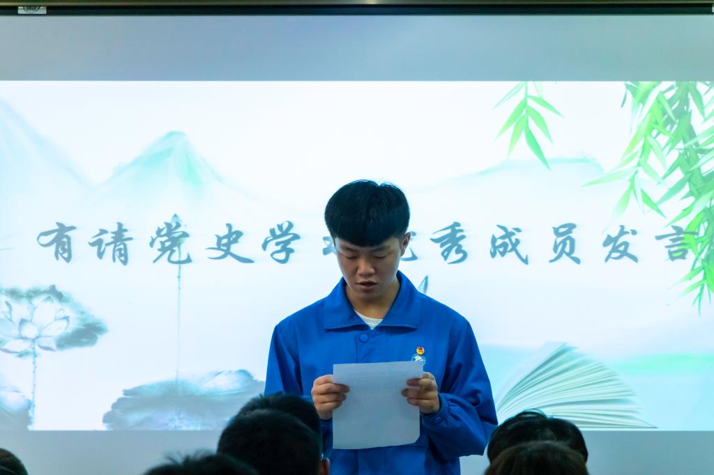 活动开始后,首先由主持人介绍了活动意义以及活动流程;为激起同学们参加活动的热情,读书分享活动开始前进行了思政三分钟"红色"视频展,在思政三分钟期间,同学们积极互动,热烈讨论,针对主持人提出的问题畅所欲言,其他同学也结合自己的所思所感进行有益的补充,在短时间内掀起了一场头脑的风暴,思想的大餐。随后“党史笔记进宿舍”优秀笔记获奖者分别进行了分享发言。其中杨彦斌分享了自己的感想,他从《中国共产党历史二十八讲》一书中,深刻认识到中国共产党的创立是艰难的,伟大的,经历了一波三折的。这也告诉我们,没有什么事情是一蹴而就的,任何事情都需要不断的实践,坚持理论和实践的有机结合才能实现最终的目标。路菲菲分享了《中共党史若干问题再研究》一书,从书中可以看出,任何学习都不能是照抄照搬的,而是要善于总结经验,结合自身具体情况,并且不能回避错误,要从错误中吸取教训,不断提高认识水平和实践能力。