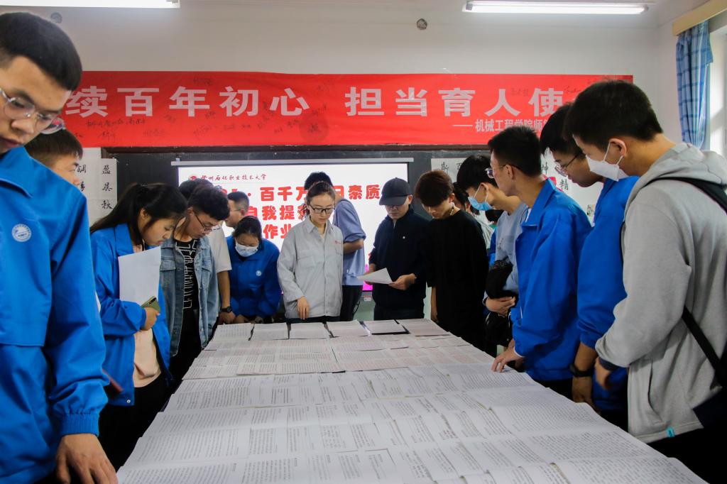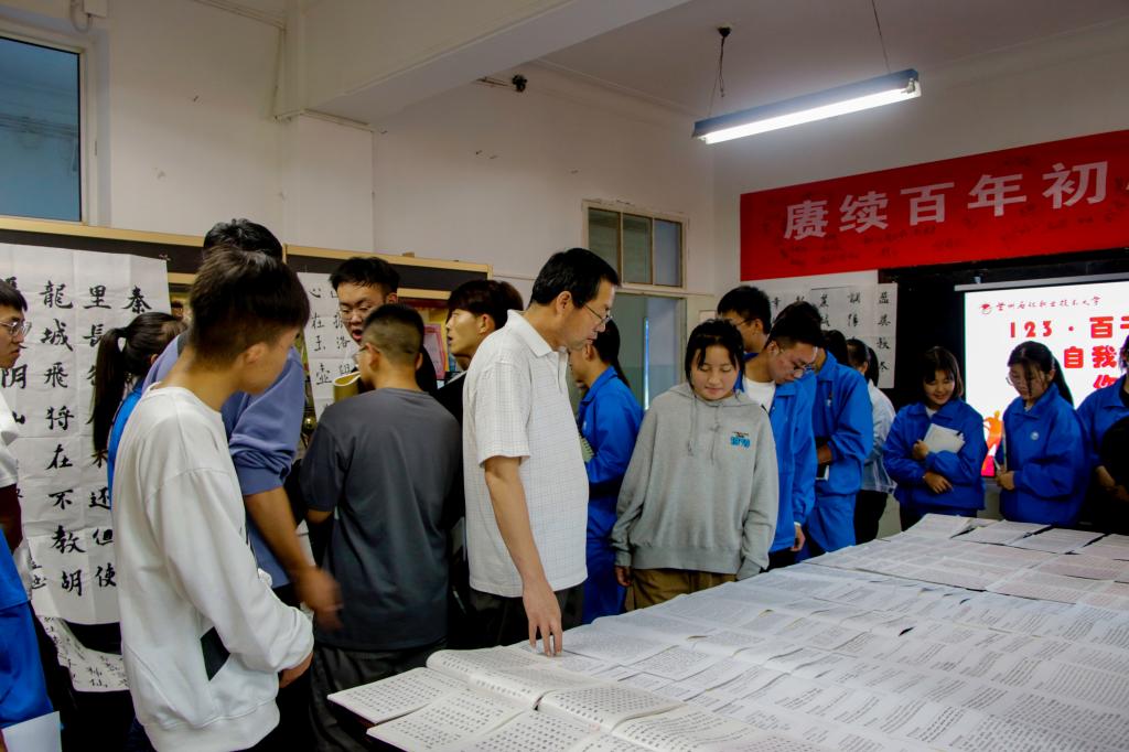 为提高员工作业的书写水平和规范意识,使广老员工树立正确的学习态度和良好的学习习惯。9月24日午,懂球体育团总支社会实践部在机电楼展览室组织开展了“123百千万”百日素质自我提升作业展评活动。党总支副书记王小芬、辅导员、21级各班班委参加了此次展评活动。