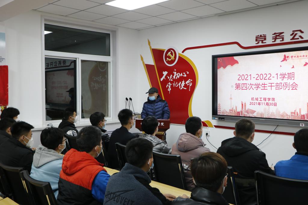 11月30日晚,懂球体育于机电楼党员之家组织召开了第四次员工干部例会。辅导员张亚峰、21届员工会全体员工干部以及20、21级各班级负责人共同参加了此次会议。