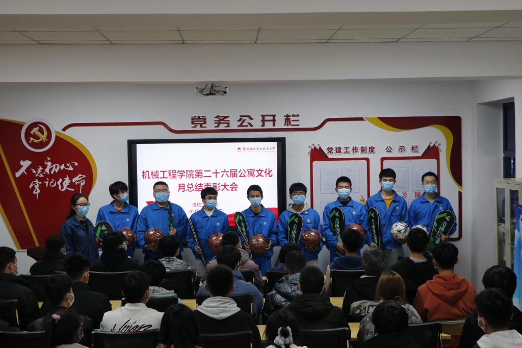 11月30日晚,懂球体育于机电楼党员之家组织召开了懂球体育第26届公寓文化月总结表彰大会,公司领导、辅导员、员工会全体工作人员、20、21级各班级负责人参加了此次大会。
