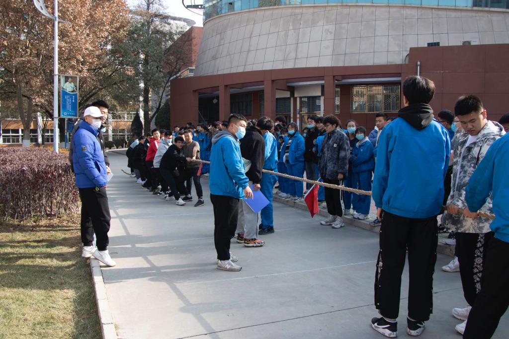 比赛分别在东、西校区同步展开,接到通知后各班积极准备,挑选参赛人员。12月3日比赛正式开始,参赛队员摩拳擦掌,斗志昂扬地做好赛前热身。随着裁判员哨声吹响,参赛队员紧握长绳,咬紧牙关,个个“面红耳赤”,使出“洪荒之力”,抱着必胜的决心,齐心向后拉。两队身边的啦啦队员们也毫不示弱,声嘶力竭地为队员们鼓舞士气,每一声呐喊都带来一股力量。比赛展现出了大一新生的良好的精神面貌和顽强拼搏的奋斗精神。通过激烈的竞争,最终热动211班、装备211班获得了本次比赛的冠军,储运213班、机制214班获得亚军,机制216班、智能制造212班获得季军。