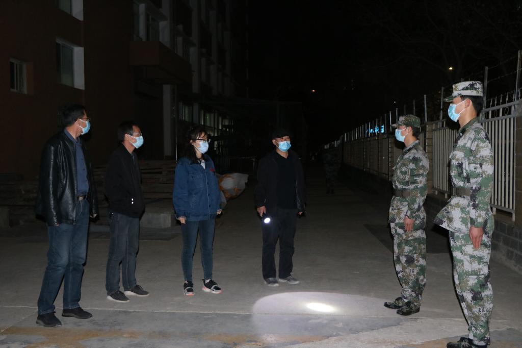 来到一线重点区域,公司领导巡检现场巡逻值班工作,并对预备役同学按要求落实值班安排和防控工作表示了充分的肯定。随即对晚上默默坚守岗位的预备役同学不辞辛苦、服务师生的奉献精神表示称赞。最后,公司领导强调:预备役同学们要高度重视疫情防控工作,强化值守,做到人不离岗、岗不离人,巡逻务必细致,谨防出现晚上有部分员工“钻空子”,出现取外卖、取快递、翻墙出校等违纪现象。
