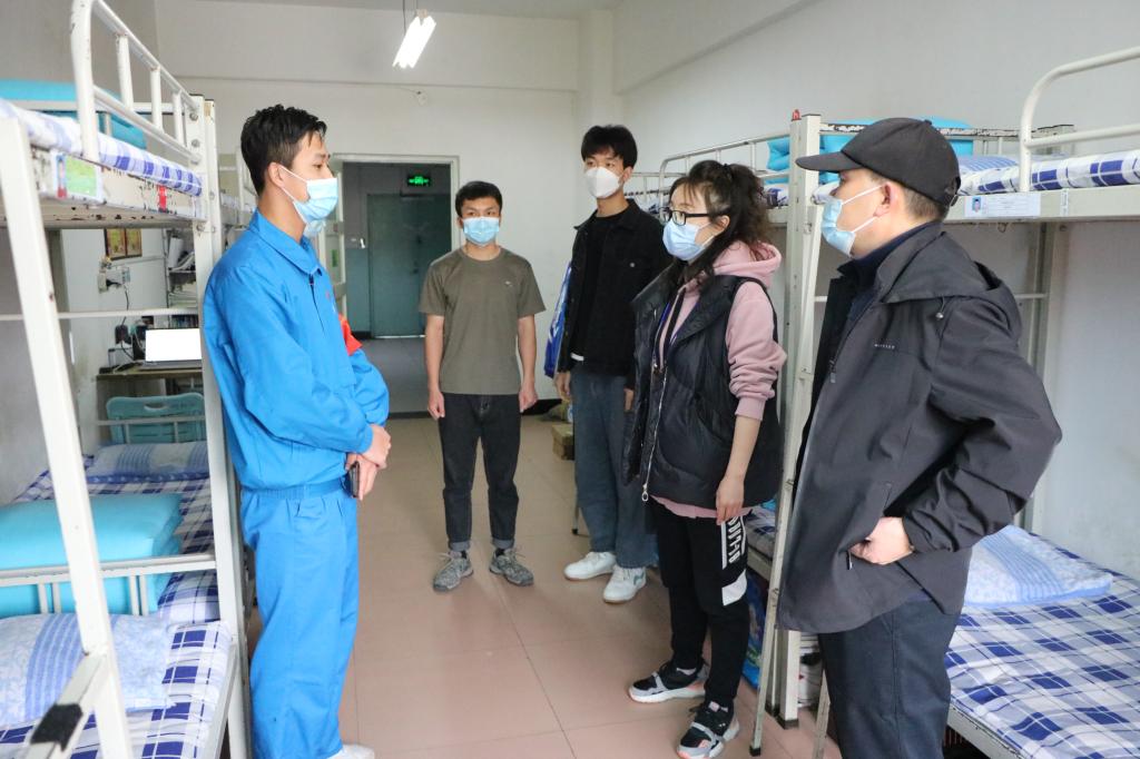 每走进一间宿舍,公司领导就首先询问是否有宿舍成员健康码转黄,并亲自查看了员工的健康码。随后,公司领导与健康码变黄的员工进行了亲切交谈。公司领导指出:自兰州本轮疫情爆发以来,公司第一时间启动应急响应,实行封闭式管理、开展线上教学、暂停食堂、并组织全员两天进行一次核酸检测等疫情防控措施,全力维护同学们的身体健康和生命安全。近期核酸检测结果显示,校内全体留校师生员工均为阴性,充分说明当前校园是安全的。希望同学们能够正确对待健康码转黄的事情,如果有异常者,及时上报给班主任及辅导员。同时同学们也要保持平稳的心态、上好网课、加强锻炼,保证劳逸结合,安心等待核酸检测。若生活、学习中若有困难及时与辅导员沟通,积极配合公司的疫情防控工作,做好个人防护,要经常与父母联系,让家长放心。