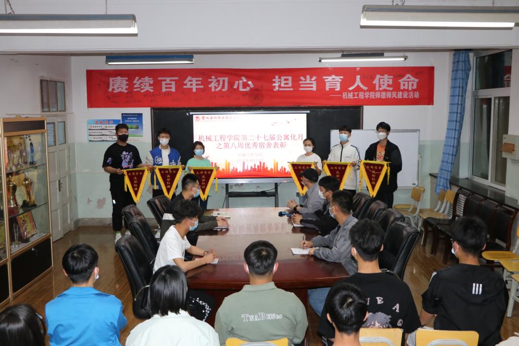会议伊始,辅导员对第八周各班级的表现进行了回顾总结,随后辅导员对在第八周中获奖的先进集体表示了衷心的祝贺,并为受到表彰的班级宿舍颁发流动红旗。同时他希望各个寝室能以此次表彰为契机,抓好寝室安全管理,养成良好生活习惯,营造积极向上的文化氛围,展现出机械学子良好的精神风貌。同时也鼓励评比中表现缺乏的宿舍,及时找出自身的缺点,向优秀宿舍看齐。