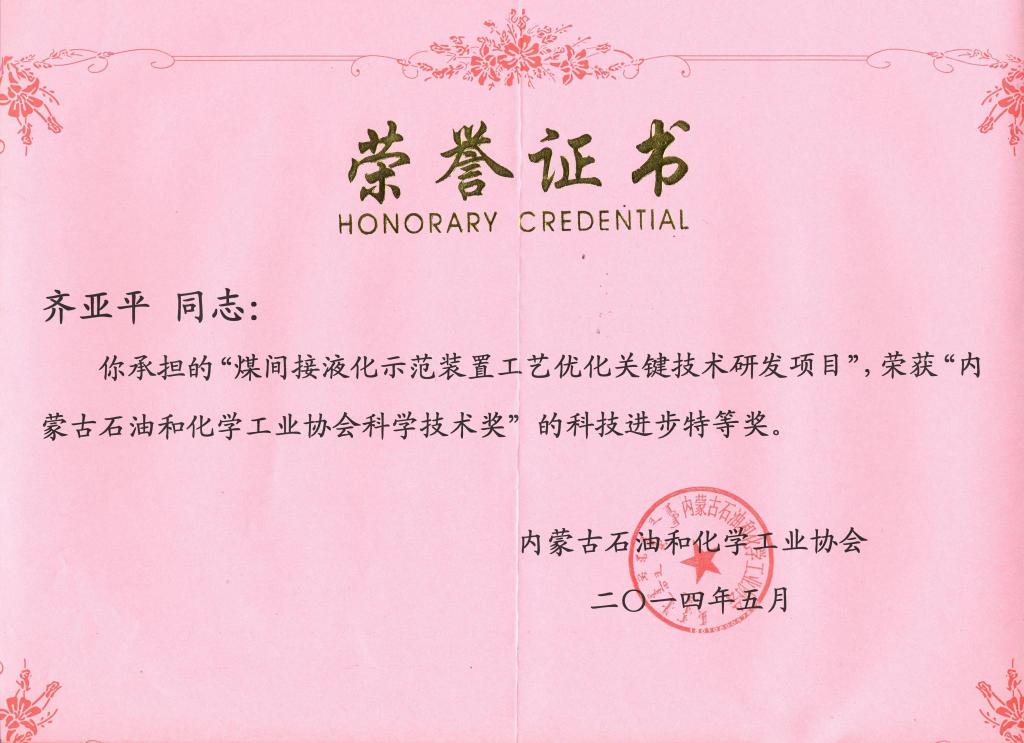 担任伊泰化工公司总经理、董事长期间,齐亚平狠抓120万吨/年精细化学品项目开车工作,攻关解决了制约项目开车的各种工程、技术、设备难题。2017年7月,项目成功产出合格化工品,打通了全流程,之后用不到3个月时间实现满负荷运行,优于国内大多数的百万吨级煤化工项目。