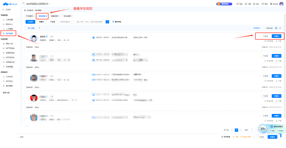 4.查看员工简历。