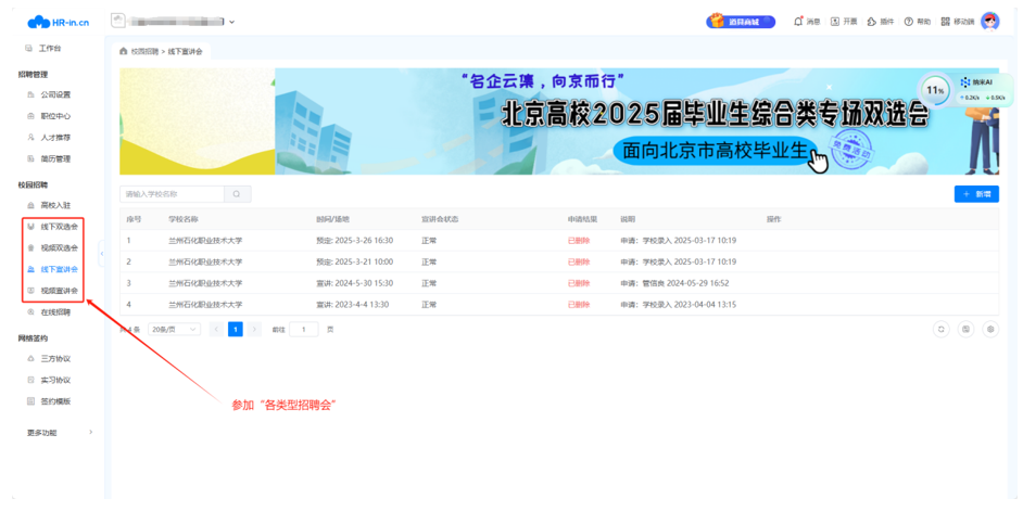 3.企业登录后可以发布或更新招聘信息,招聘时间根据企业实际情况填写到5月12日以后,企业招聘信息发布后,公司会根据公司招聘情况进行时间微调,企业可以通过云就业平台查看最终的宣讲时间及地点。